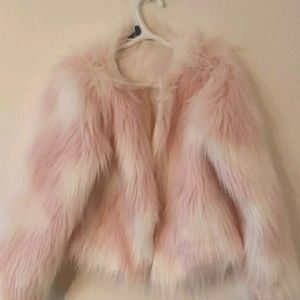 Pink and White Faux Fur Coat