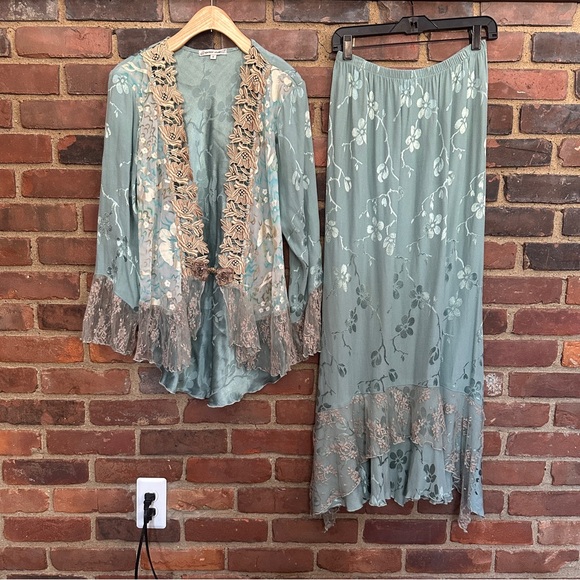 Vikki Vi Tops - Vikki Vi Blouse Silk Velvet Burnout Blend Floral Semi Sheer Button‎ Up Top