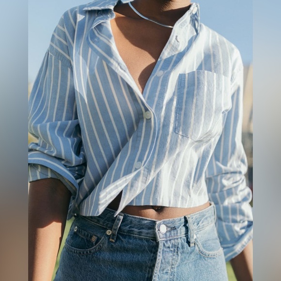 Everlane Tops - [s] EVERLANE NWOT The Silky Cotton Way-Short Shirt Mariner Blue & White