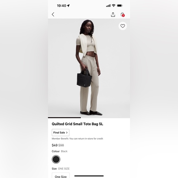 Item is just as pictured - thank you for the fast shipping and the nice presentation, came in a reusable Lululemon bag, just like purchasing from the store, and with a bonus pack of Mamba fruit chews too! How sweet! 🍬🍬🍬