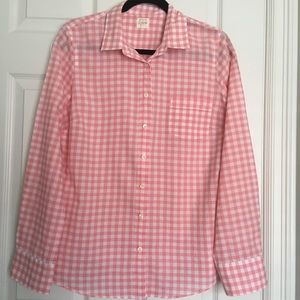 J. Crew Perfect Shirt Medium Gingham Plaid Pink White Button Down Shirt