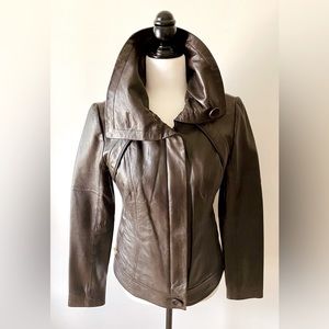 Soia & Kyo Soft Chocolate Brown Motorcycle Style Leather Zip Up Jacket