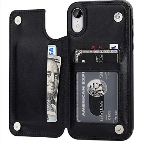 Xr Iphone Wallet Handbags - Premium Leather Slim Back Cover Wallet iPhone Xr (6.1") Case - Black