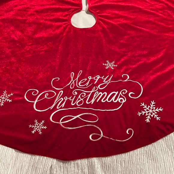 Thank you so much for this beautiful tree skirt. It is so lovely. Merry Christmas early. Take care and be safe. Thank you for the card too.
