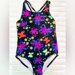 Girls Size 12 Speedo black swimsuit with butterfly designs no tags but new