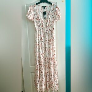 Forever 21 Women’s maxi dress white with pink florals/blossoms cottagecore