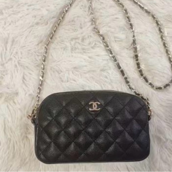 This beautiful CHANEL makeup bag with chain arrived just as described and looked in photos! Thank you <3