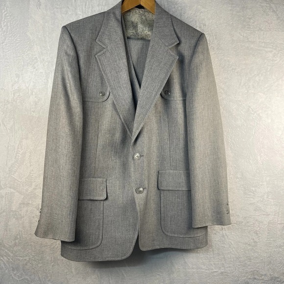 The photos couldn't do this vintage suit justice....it's still"brand new" and fits like a tailored custom style suit and it LOOKS GREAT on me,only need hem alterations!