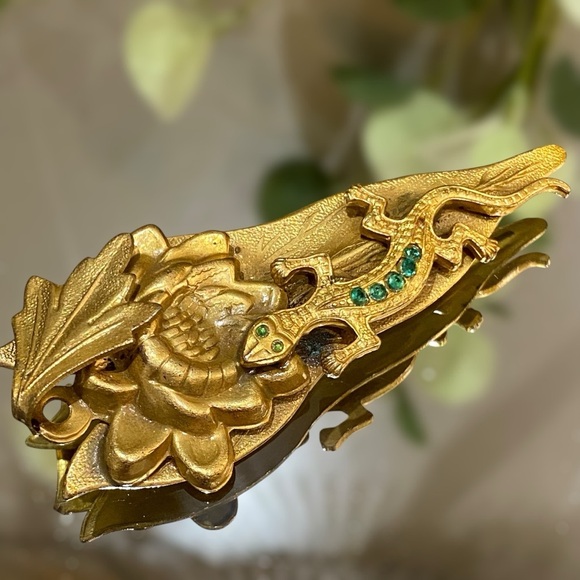 Love it. Such a beautiful brooch. The green rhinestones look wonderful against the gold.