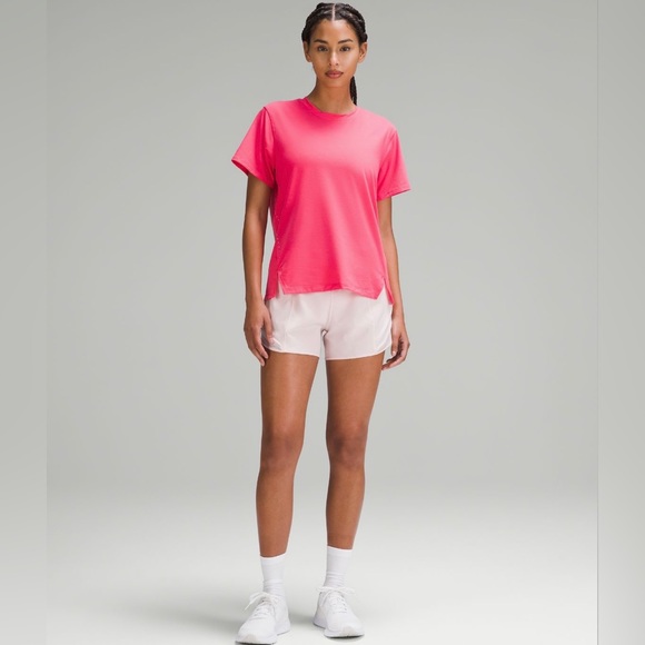 New, as described, and with a small, branded bag as well. This is my favorite (discontinued) running shirt and I was so happy to have found another one!