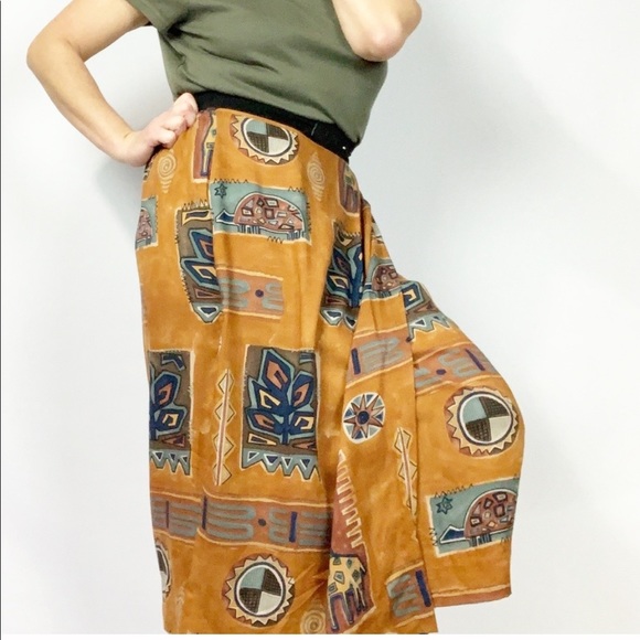 Vintage Dresses & Skirts - Vintage 90s Printed Patchwork Wrap Skirt