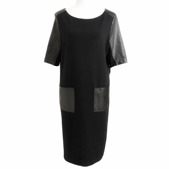 This is a great dress. Very simple style but the leather pockets and shoulder inserts make this a stand out piece.Very happy with my purchase and will style it with my leather or suede boots. Thanks to the seller. In excellent condition!!