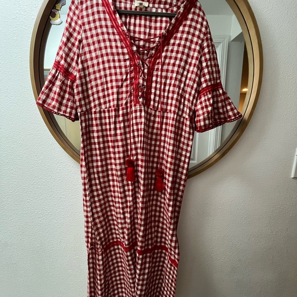 So beautiful POL gingham dress! Excellent price and condition as described by the seller. Nice thanks card. Beautiful packing. Nice seller. Super fast shipping. Thanks so much!