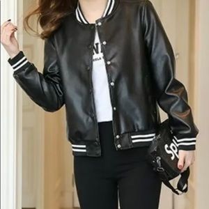 NWOT Faux Leather Baseball Black Bomber Jacket XS