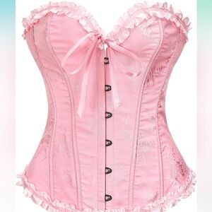 Elegant Lace Trim Adjustable Satin corset - Pink