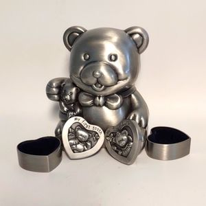 Pewter Teddy bear bank, first tooth,first curl set