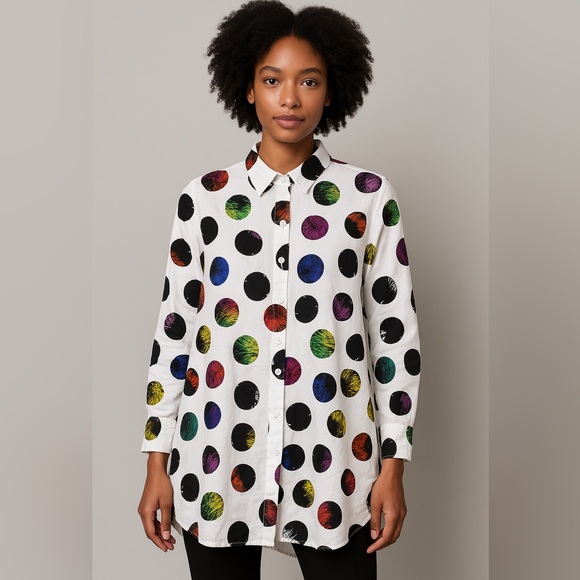 As described and depicted. Lovely new to me, pilcro print blouse. Soft against skin or layering piece: just what I need!😊! Thank you so much!❣️⭐️⭐️⭐️⭐️⭐️⭐️⭐️⭐️⭐️⭐️❣️