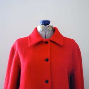 Vibrant Cherry Red Wool Peacoat (L/XL)