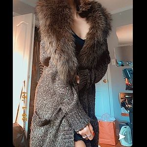 Michael Kors Cardigan w/Detachable Faux Fur Collar