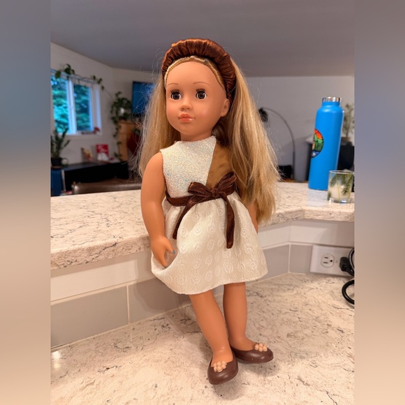Thank you the dog got here before Christmas. I appreciate that tremendously. Very pretty. She’s going to love her doll and how shiny her dress is. I appreciate the brush. Thank you for the added bonus. Happy holidays to you and your family. : )