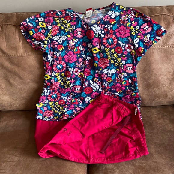 The scrub tops arrived freshly scented and washed. Great condition also.
