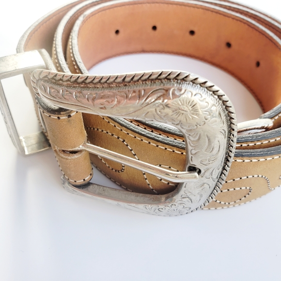 Tony Lama Accessories - Tony Lama Western Leather Belt Silver Concho Vintage 90s Size 34 Style 7759L