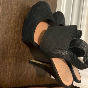 Tory Burch Black Sutton Camellia Lace Satin Pumps!