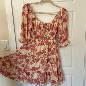 EUC - Size M - Charlotte Russe- Pink and Beige Floral Spring Dress