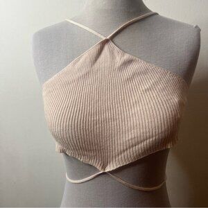 SHEIN brown ribbed stretch squareneck cotton blend knit crop tank top size 4 US