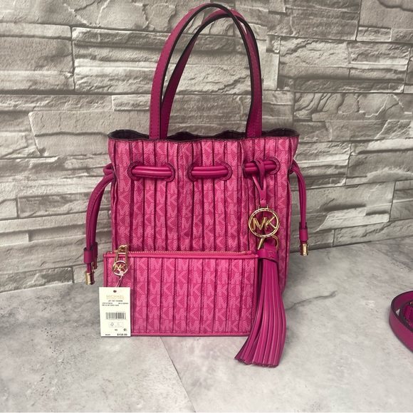 So different, I love the pleated berry colored bucket bag. It'll be a hit for summer!