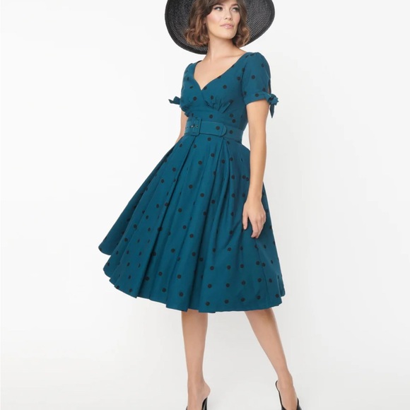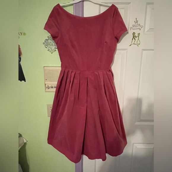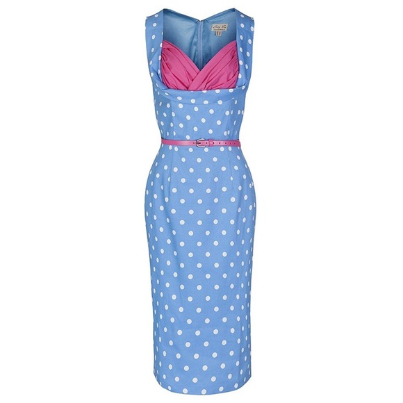 Pretty pinup girl dress! 🩵🩷🩵 I love the colors, design and style. It fits me above the knee at 5’9 but my seamstress will let the bottom hem out for longer fit. There is some zipper puckering but not that noticeable. Thank you for the great deal!