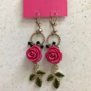 NEW BETSEY JOHNSON LONG ROSE EARRINGS
