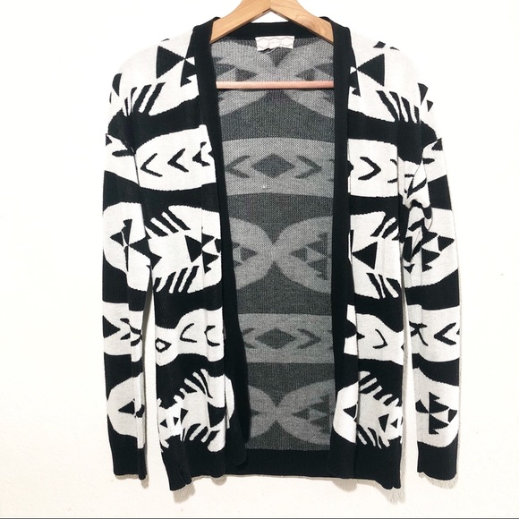 Pink Rose Sweaters - Pink Rose Black & White Aztec Print Open Cardigan