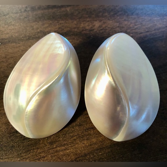 FORNASH Jewelry - FORNASH Deep Blue Coral & Cream Acrylic Gold Tone Teardrop Dangle Earrings