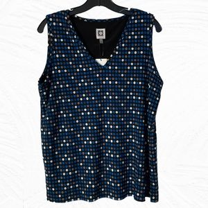 ANNE KLEIN Polka Dot V-Neck Tank SZ M