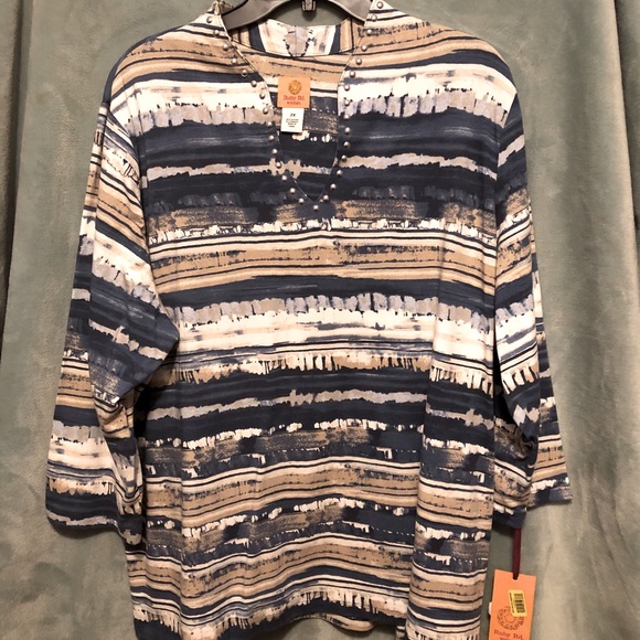 The photos don't show that it is blue...they look black; but your description did say blue and tan....photos just didn't show true colors