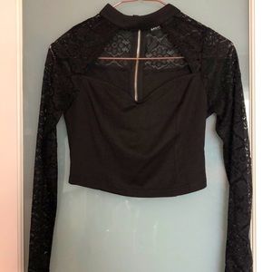 Lace sleeve crop top