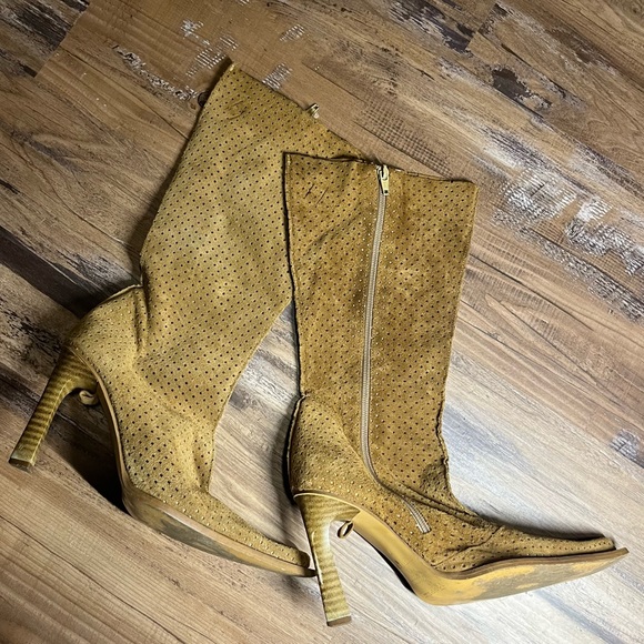 These boots are so fabulous. They are deliciously pointy and feel so nice! The suede is so silky! I love them. They were kept in amazing condition with the only true wear being in the heel tips. No stains, no smells and shipping with care. I will be looking for more! Thank you Sam!