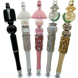 Rhinestone bead pen & keychain set CC