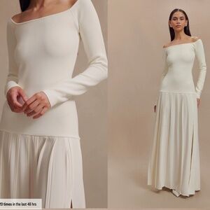 Meshki Marisol Dress - Off Shoulder Boucle Maxi Dress - Ivory