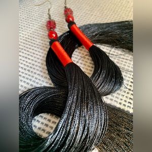 🍓 Long silky black tassel earrings with red strawberry details strawberries 🍓