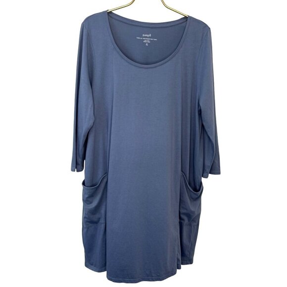 This top is a lovely blue color and is very soft. I'm not really a "blue" person but I like that this is a soft gray blue which goes with lots of colors. I was a little disappointed that this has 3/4 sleeves instead of long sleeves but I can live with that considering how soft this is against my skin. Thank you for sharing your closet.