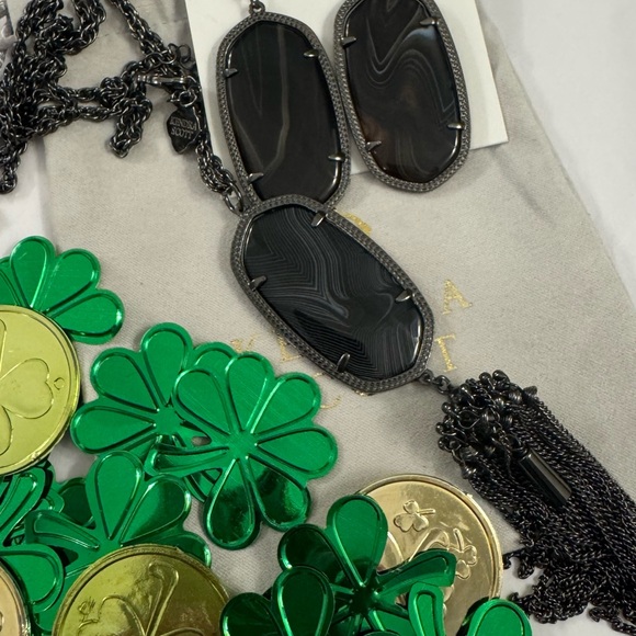 I received the necklace with the beautiful earrings and they look amazing. Such a sophisticated set, the black looks beautiful with the white marble like stripes. I’m extremely happy with my purchase, thank you. ☺️