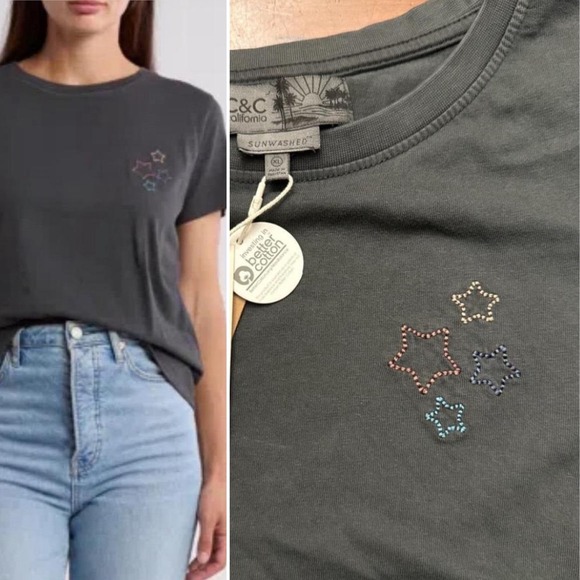 I love this t-shirt.I love the little embroidered stars.It's exactly as pictured and described...fast shipping.