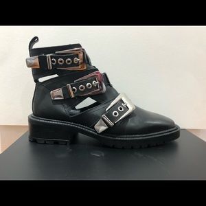 ASOS Black leather ankle cut out buckle boots
