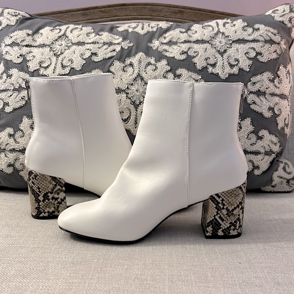 BAMBOO Shoes - Bamboo Size 8.5 White Leather Snakeskin Heel Bootie NEW