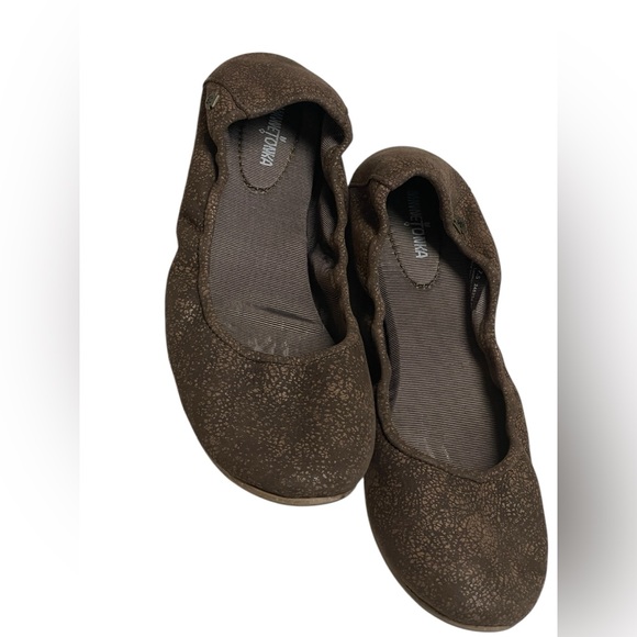 The seller and the transaction were great! Unfortunately, the shoes are too tight for me even tho I can wear Minnetonka moccasins in a size 7. I’m reposhing for that reason only. The ballet flats are, otherwise, very nice.