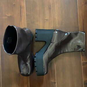 Chunky Lace-Up Platform Patent Shoes - Brown
