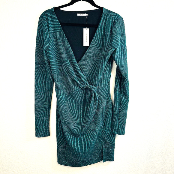 Mi Ami Dresses & Skirts - Mi Ami Francesca’s Women's Green Long Sleeve Coral V-Neck Mini Dress Size Medium