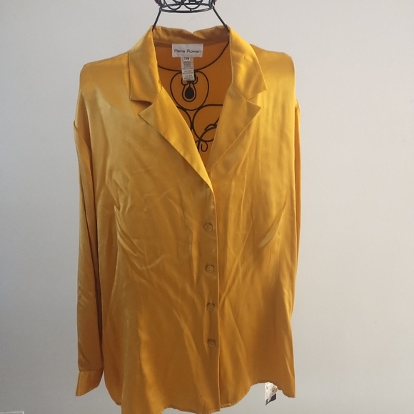 This is gorgeous! The merchandise arrived early and in great condition. Beautiful Rena Rowan gold silk blouse. Reasonable price. Recommend seller and rate seller 5 star. Very professional. Many thanks.